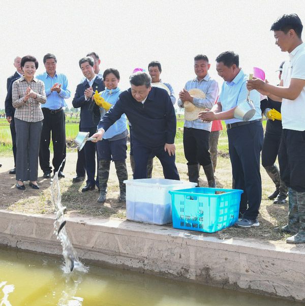 習近平總書記9日在銀川考察調研。他先后來到賀蘭縣稻漁空間鄉(xiāng)村生態(tài)觀光園、賀蘭山東麓葡萄種植園,了解當地發(fā)展特色農業(yè)產業(yè)、加強賀蘭山生態(tài)保護等情況。