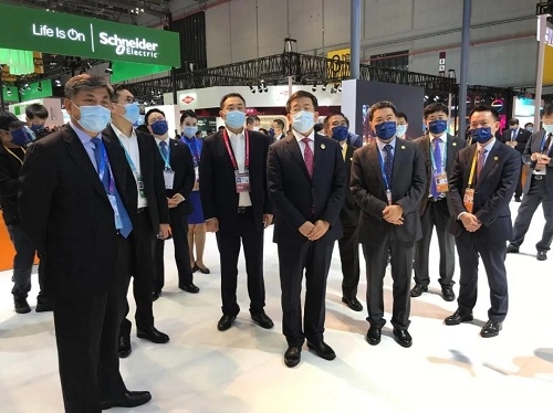 商務(wù)部副部長任鴻斌參觀集團公司組展的技術(shù)裝備展區(qū)