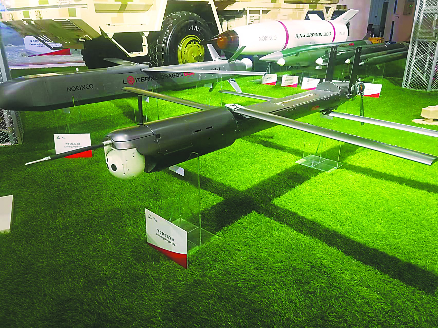 兵器工業(yè)集團(tuán)展出的SR-5遠(yuǎn)程火箭炮系統(tǒng)被稱為“中國(guó)版‘海馬斯’”,它的特點(diǎn)之一就是能共架發(fā)射“飛龍-60”巡飛彈,從而引導(dǎo)火箭炮對(duì)數(shù)百公里外目標(biāo)的遠(yuǎn)程精確打擊。