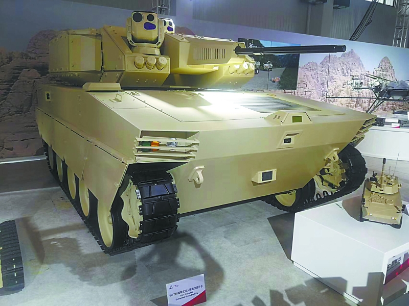 相比各種無人機(jī)和巡飛彈,珠海航展上的無人地面作戰(zhàn)車輛在作戰(zhàn)性能上也毫不遜色。除了VT-5U輕型坦克可以臨時(shí)客串“無人坦克”外,兵器工業(yè)集團(tuán)的VU-T10履帶式無人地面作戰(zhàn)平臺(tái)也堪稱重型無人車輛。VU-T10主要針對(duì)城市環(huán)境作戰(zhàn),選擇采用厚重的履帶式底盤,配備有30毫米口徑遙控武器站,未來還可以根據(jù)需要配備4枚“紅箭-12”反坦克導(dǎo)彈,加載7.62毫米機(jī)槍,其武器配備的豐富程度相比俄羅斯BMPT“終結(jié)者”火力支援車也不遜色,卻沒有了后者在巷戰(zhàn)中可能遭遇人員傷亡的風(fēng)險(xiǎn)。