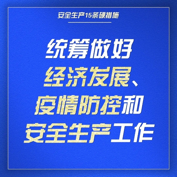 為認真貫徹落實習近平總書記關于安全生產重要指示精神和黨中央、國務院決策部署,近日,國務院安委會梳理相關法律法規(guī)已有規(guī)定、以往管用舉措和近年來針對新情況采取的有效措施,制定了進一步強化安全生產責任落實、堅決防范遏制重特大事故的十五條硬措施,部署發(fā)動各方面力量全力抓好安全防范工作,為黨的二十大勝利召開創(chuàng)造良好安全環(huán)境。