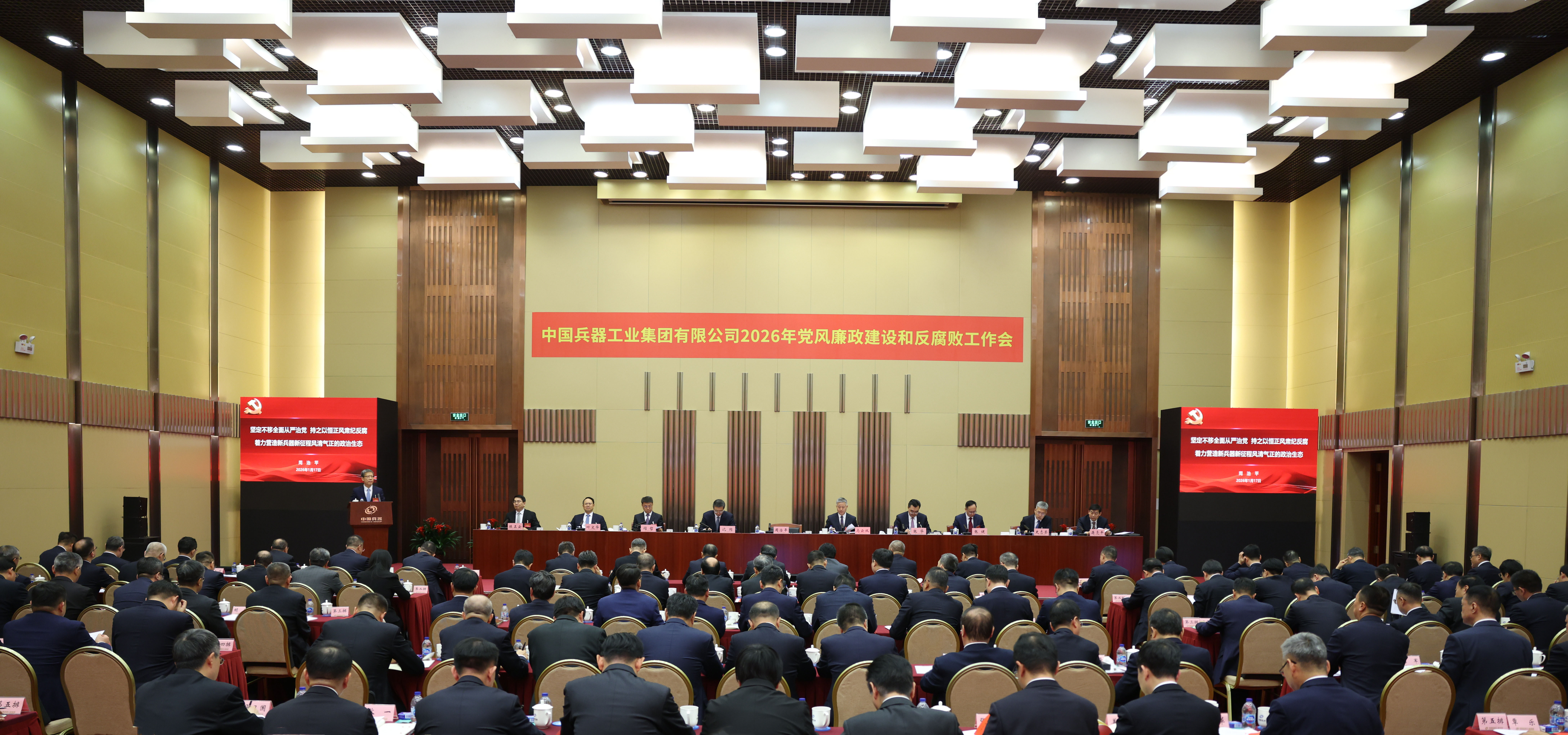 1月17日,中國兵器工業(yè)集團有限公司召開2026年黨風(fēng)廉政建設(shè)和反腐敗工作會議,會議以習(xí)近平新時代中國特色社會主義思想為指導(dǎo),深入學(xué)習(xí)貫徹黨的二十大和二十屆四中全會精神,全面貫徹落實二十屆中央紀委五次全會精神,總結(jié)工作、部署任務(wù),以更高標(biāo)準(zhǔn)、更實舉措推進全面從嚴治黨,為實現(xiàn)集團公司“十五五”時期目標(biāo)任務(wù)提供堅強保障。集團公司黨組書記、董事長周治平作了《堅定不移全面從嚴治黨,持之以恒正風(fēng)肅紀反腐,著力營造新兵器新征程風(fēng)清氣正的政治生態(tài)》的講話,并與集團公司各部門、各子集團和直管單位簽訂《黨風(fēng)廉政責(zé)任書》。駐集團公司紀檢監(jiān)察組組長、集團公司黨組成員陳正云傳達了二十屆中央紀委五次全會精神,通報了駐集團公司紀檢監(jiān)察組2025年重點工作和查處典型案件暴露出來的問題并提出意見要求。集團公司總經(jīng)理、黨組副書記馬云雙主持會議。